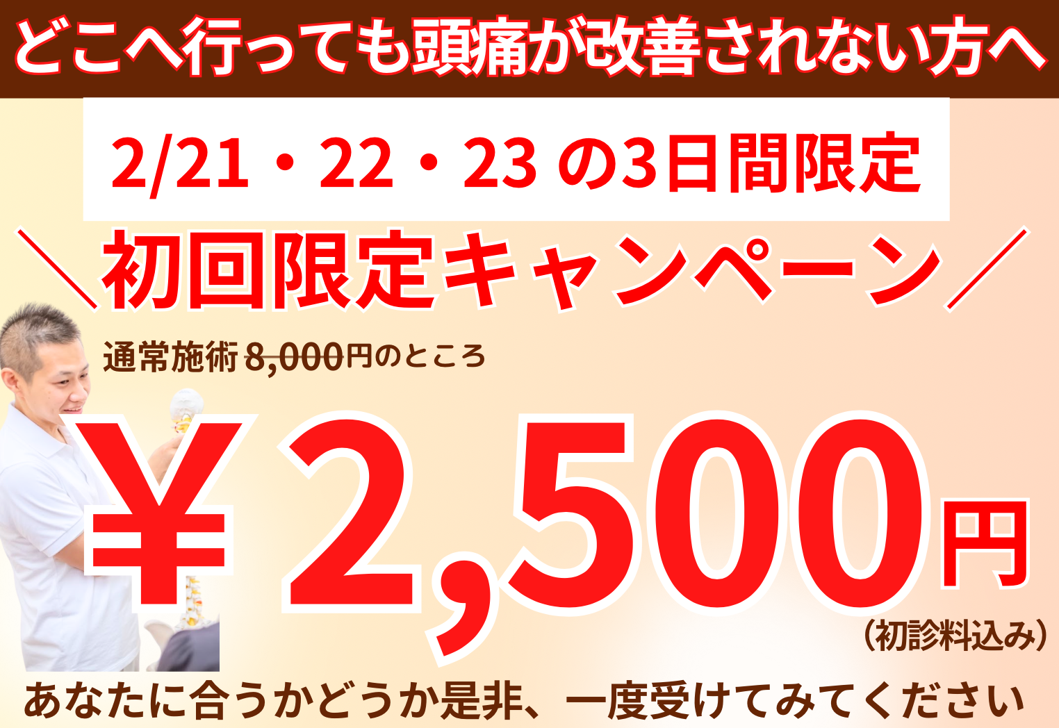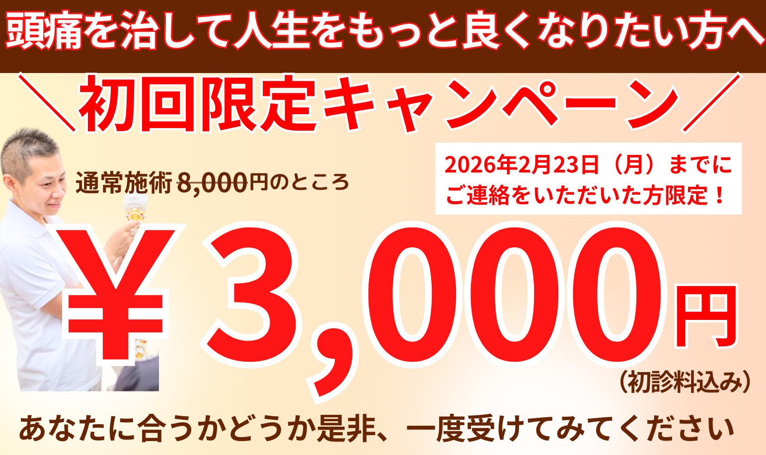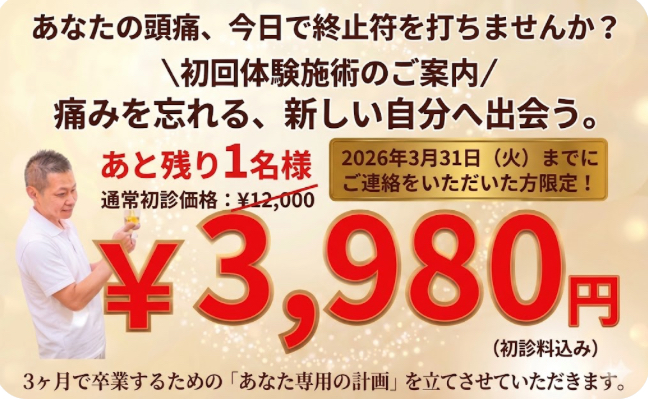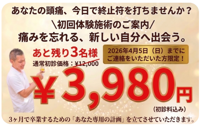 頭痛の原因を探り、最短最速であなたの「痛み」を改善します!