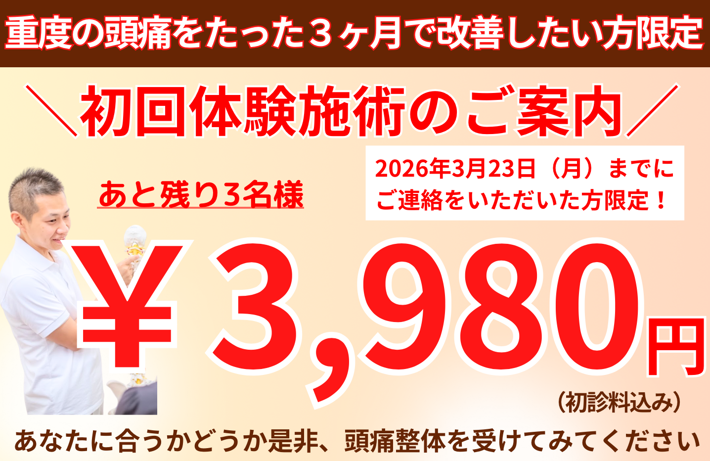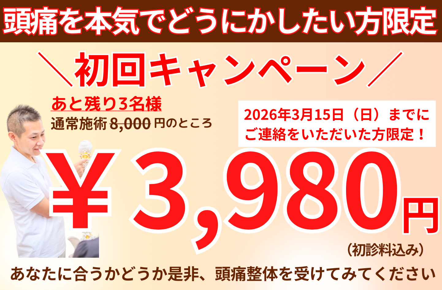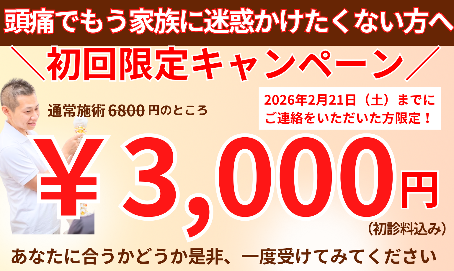 頭痛の原因を探り、最短最速であなたの「痛み」を改善します!