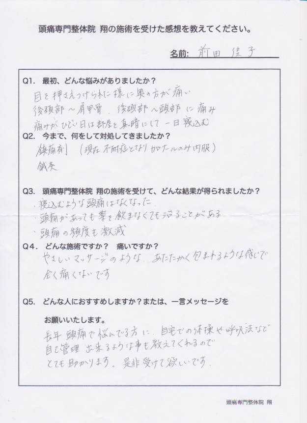 頭痛の苦しい毎日から笑顔の毎日に戻ることができました!